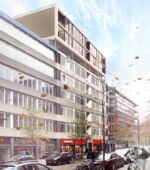 Omschrijving: Dit voormalig gebouw van Het Vrije Volk in Rotterdam heeft een nieuwe bestemming gekregen. In de nieuwe situatie is er plaats gemaakt voor woningen voor studenten, op de begane grond komen winkels en de bestaande kelder wordt geschikt gemaakt voor parkeren en bergingen.